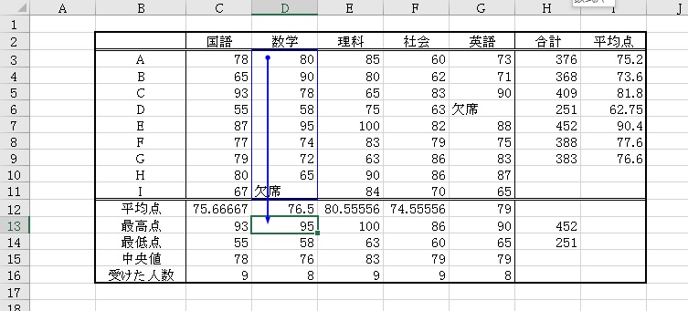 ワークシートの分析(Excel)