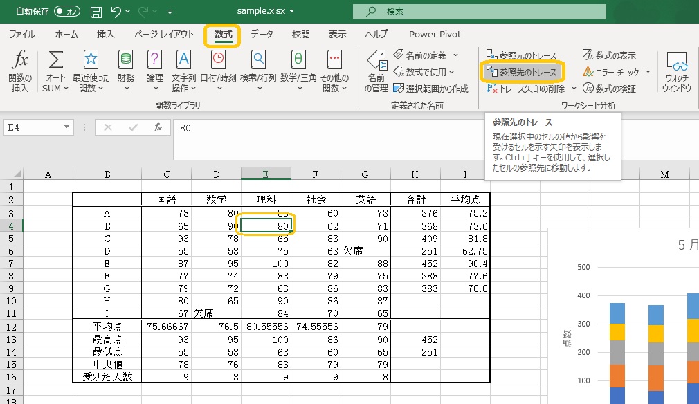 どこを参照しているかがトレースされます。トレースされた矢印は「トレース矢印の削除」ボタンをクリックして削除することができます。