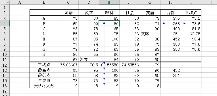 参照先のセルがトレースされます。