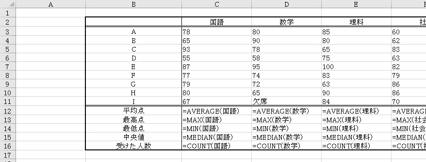 数式や関数が入力されている部分は、内容が表示されます。