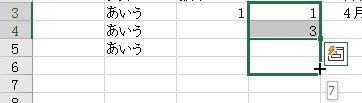 もとになるセルを選択します。下の図の場合は3つのセルで同時にオートフィルを使います。