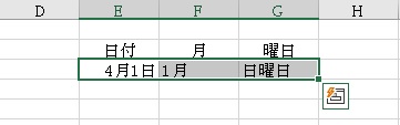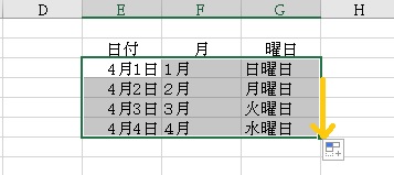 日付を連続で入力したり、月や曜日を楽に入力したい場合もオートフィルを使います。