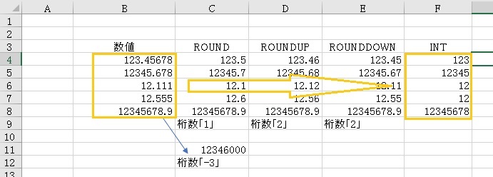ROUND関数、ROUNDUP関数、ROUNDDOWN関数