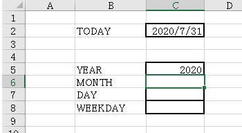 同様に、MONTH関数とDAY関数も「2020/7/31」を参照すると、下の図のようになります。