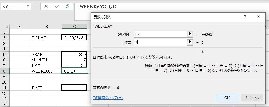 WEEKDAY関数