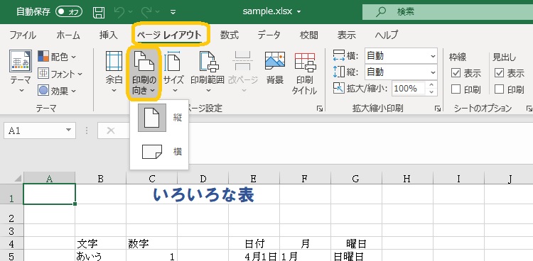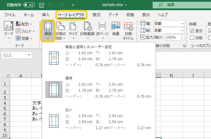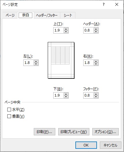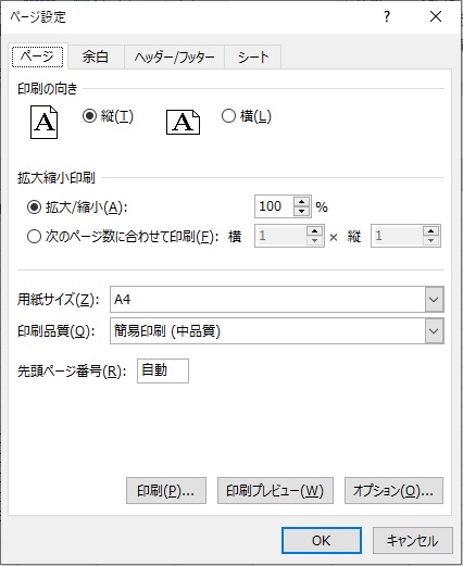 また、他の方法として、「ページ設定」画面から設定すると、下のような画面が出てきます。