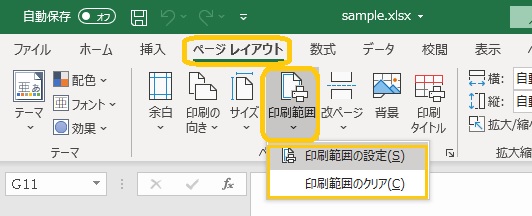 印刷範囲がシートにも表示され、印刷時には指定された範囲が印刷されます。