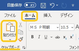 コピーや切り取りを行った文字、段落を貼り付けたいところへ貼り付けます。