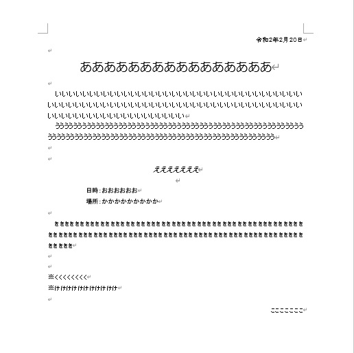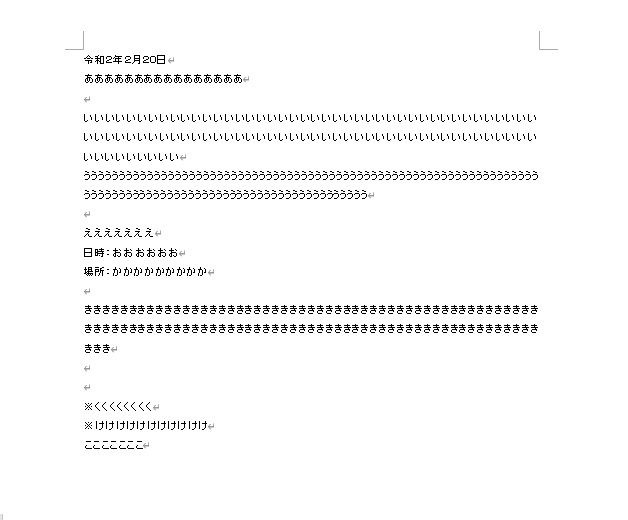 文字が打てたら、文字や段落の設定を変更します。