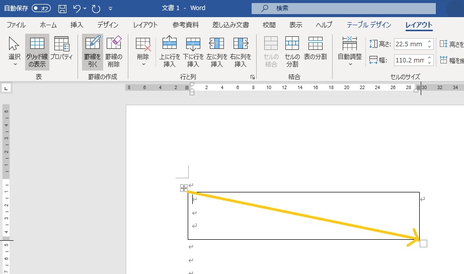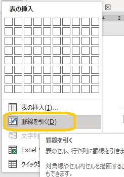 「挿入」ー「表」の「表」ボタンをクリックした後、「罫線を引く」をクリックします。