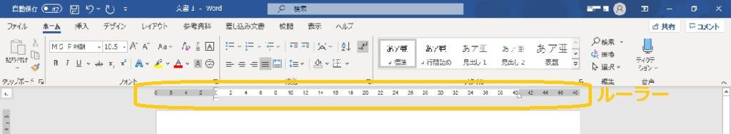 Wordの文書の上部にある目盛りの部分をルーラーと言います。