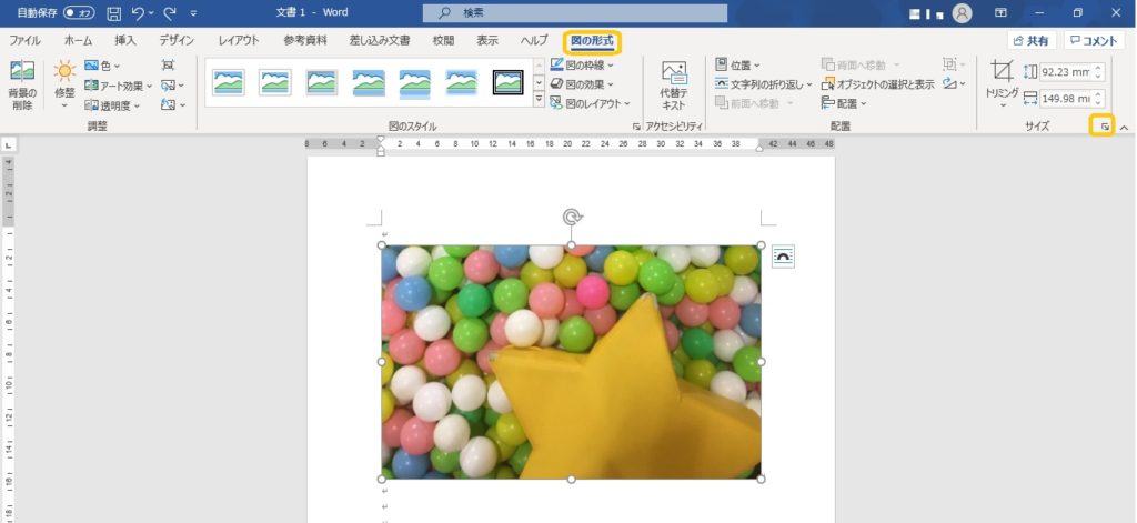 「図の形式」ー「サイズ」の右下のボタンをクリックします。