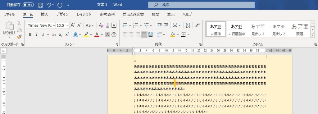 文字の折り返しで「上下」を選択すると、文字が上下に分かれます。