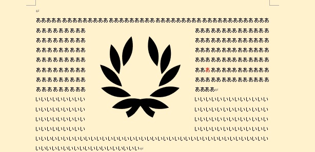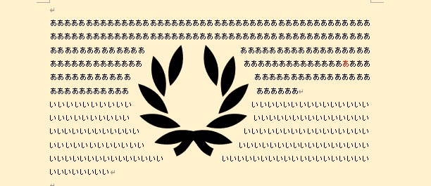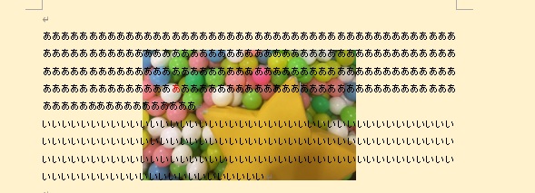 文字の折り返しで「前面」を選択すると、文字の全面に図が表示されます。文字は図の背面にまわるため、図に隠されます。