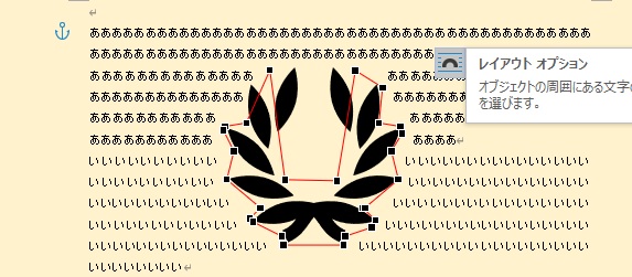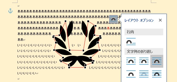 文字の折り返しを変更したいときは、図を選択したときに右上に表示される「レイアウトオプション」マークをクリックします。
